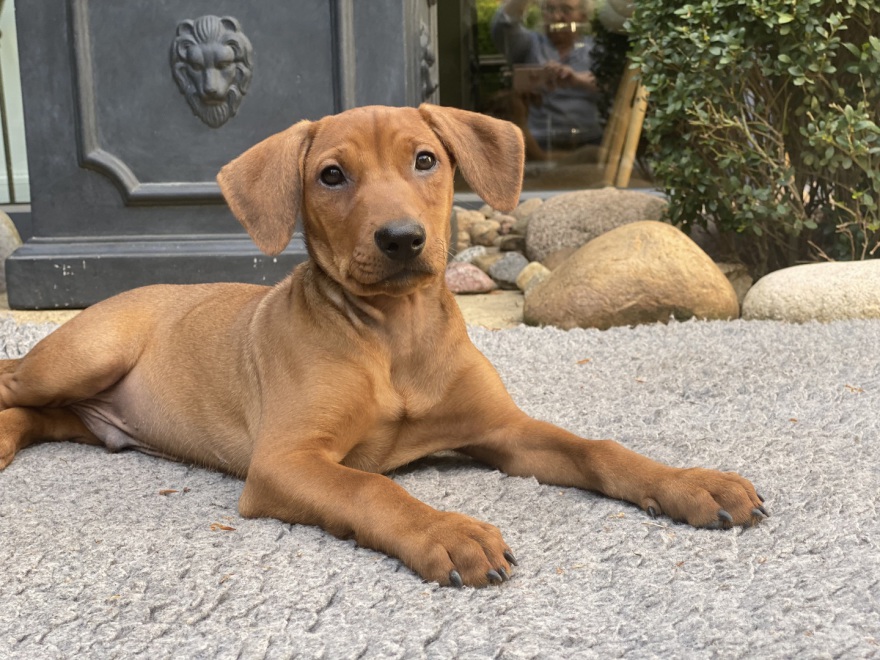 Oskar ist ein bildhübscher, dunkelroter Rüde.
